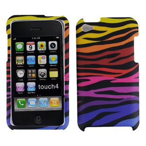 Purple Yellow Pink Multi Color Zebra Strip Rubberized Snap on Hard Skin Shell Protector Faceplate Cover Case for Apple Ipod Touch Itouch 4 4g 4th Gen + Lcd Screen Guard + Microfiber Pouch Bag + Case Opener Review