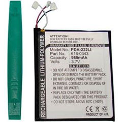 Bring back life to your worn out iPod® with a new replacement battery! Compatible with iPod Touch. Replaces Apple battery model 616-0343. • Battery type: Li-Pol • Battery voltage: 3.7V • Battery capacity: 980mAh • Mfg. #PDA-222LI. Note: iPod battery replacement may require the assistance of a skilled or experienced installer.