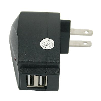 This AC to dual port USB charger allows you to charge many mobile devices. Just plug the charger into a wall outlet, connect your devices through the USB port (USB cable not included), and your device will be charging. The red LED light will indicate that the device is charging. The input is AC 100-240V and the output is DC 5V, with a max of 1000mA.