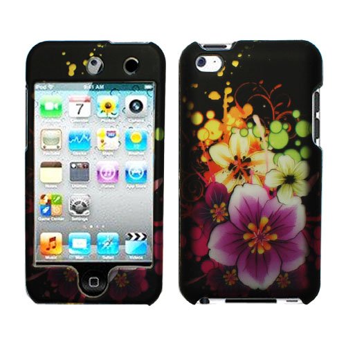APPLE IPOD TOUCH 4, Rubberized Black Purple Orange Green Flower Bubble Design Snap-On Protector Case. This Rubberized Case is the best protector cover for your IPod front and back, combining a hard plastic shell with a thin layer of soft rubberized material giving your APPLE IPOD TOUCH the ultimate in protection. The smooth surface provides you with a lasting grip on your APPLE IPOD TOUCH and exact cutouts allow full access to your phone. It will safeguard your APPLE IPOD TOUCH without adding extra bulk. Protecting your new IPod has never been this easy!