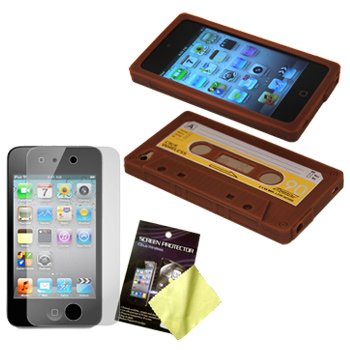 Coffee Silicone Cassette Tape Case / Skin / Cover & LCD Screen Guard / Protector for Apple iPod Touch 4 / 4G / 4th Gen Review