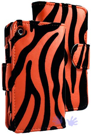 Limited edition TuchiWallet4 with special material. (Zebra lines are made from felt material) TuchiWallet4 is custom wallet type of case for the iPod Touch 4G. The iPod Touch 4G TuchiWallet4 has two credit card slots and one extra pocket on the opening. The TuchiWallet4 is made of soft all around leatherette material HHi designed by with popular TuchiWallet2 manufacturer, has many years of leather case experiences. TuchiWallet4 protect your iPod Touch 4th generation with style! The case comes built in side flap to secured your iPod Touch 4G in the case and opens with magnetic stud. iPod Touch 4g is full functional inside the case with pre-cut front/ back camera, side volume buttons, bottom dock, earphone jack and ambient light sensor. Add a bonus, it comes with free screen protector.